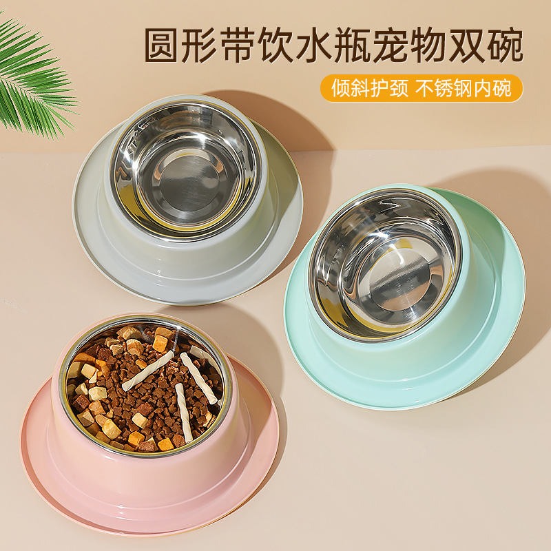 新型マカロン色15度傾斜ステンレス犬碗保護頚椎猫食器ペット用品郵送