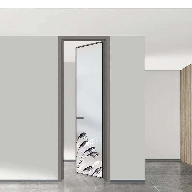 非常に狭いフラットドアチタンマグネシウム合金トイレドアキッチンドアトイレドア強化ガラストイレドア