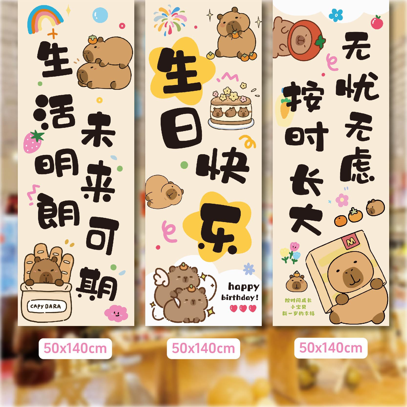 カピバラのテーマの誕生日装飾バルーンパーティーの子供の歳の儀式感のシーンは背景の壁を配置します。