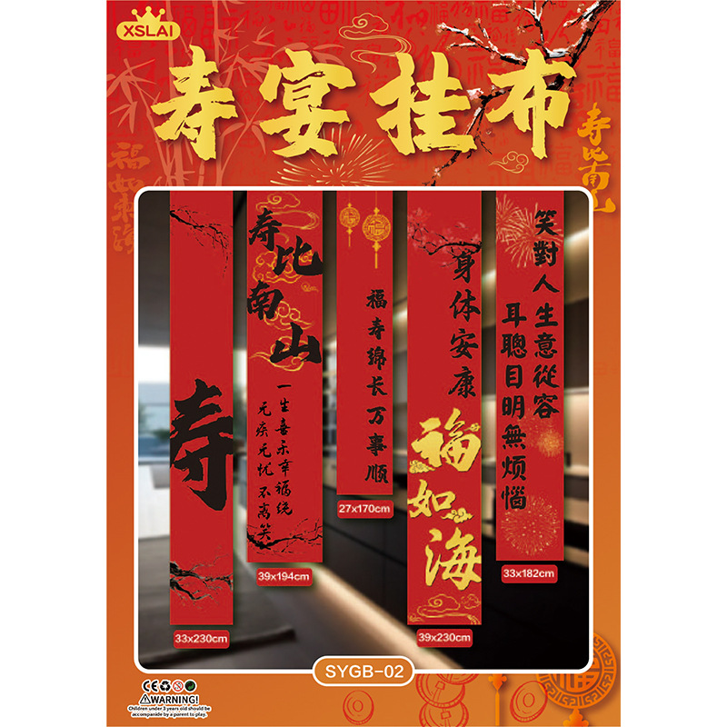 中国式の誕生日の宴は赤ちゃんの1歳の年長者の誕生日の高級感の赤い背景の布の幅の書道のを祝います。