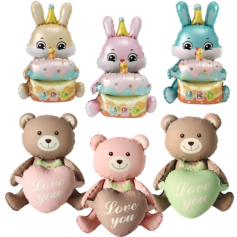 新型の越境熊はケーキのアルミニウムの膜の風船を抱いて、赤ちゃんの誕生日のパーティーの写真を撮って飾ります。