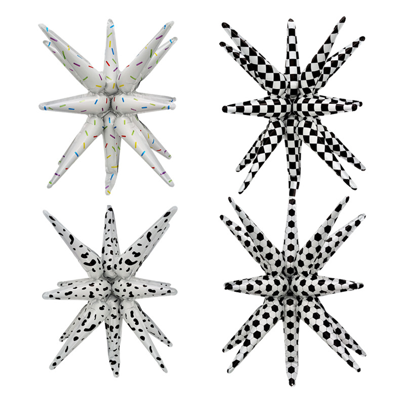 国境を越えた新型22インチ乳牛サッカー白黒格水滴爆発星アルミ膜風船テーマパーティー配置