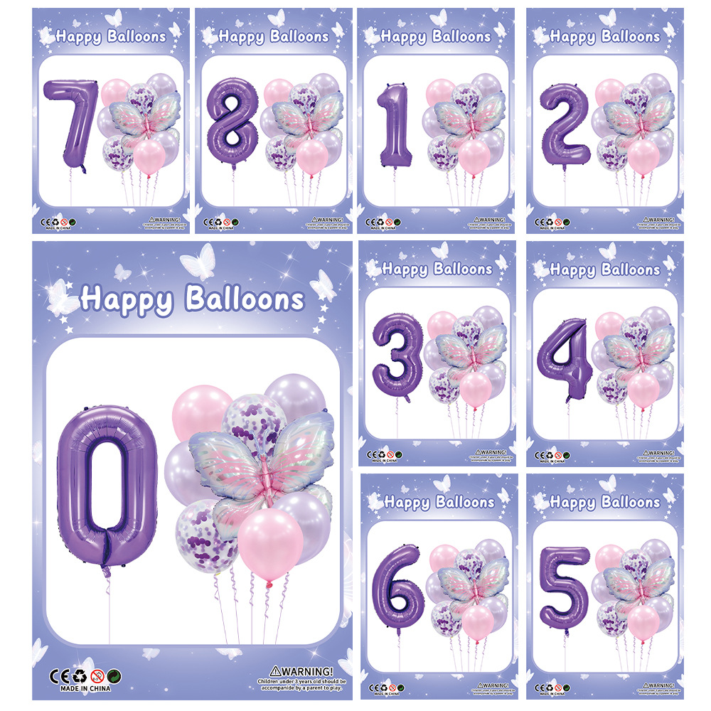 国境を越えたカラフルな蝶紫色の数字セットアルミ膜風船蝶テーマ誕生日パーティーにアルミ膜風船を配置する