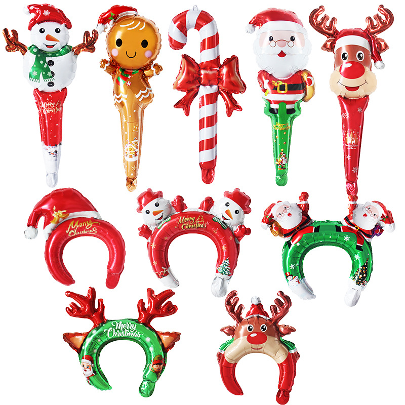 クリスマス手持ち打撃棒アルミ膜風船老人雪だるまヘラジカ杖漫画中棒クリスマスイベントプレゼント
