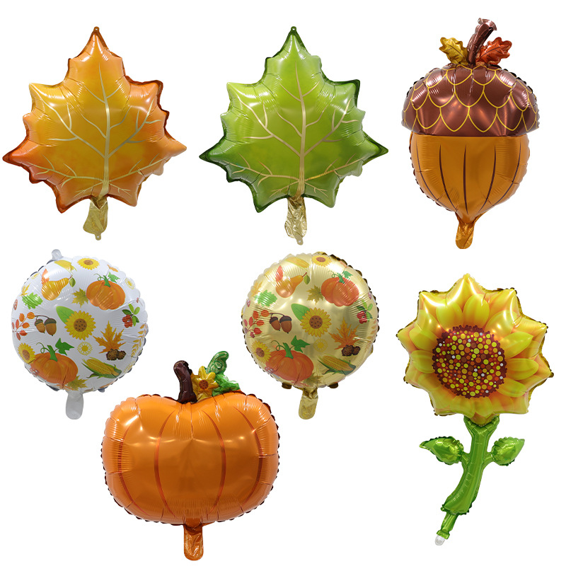 国境を越えた感謝祭の祝日装飾アルミ箔風船ヒマワリカボチャカエデナッツ造形アルミ膜風船卸売り
