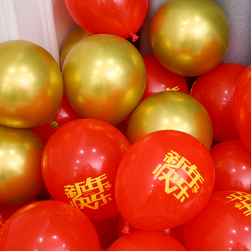 元旦新年10インチプリント新年おめでとう福紅金色風船旧正月店装飾福字ラテックス風船