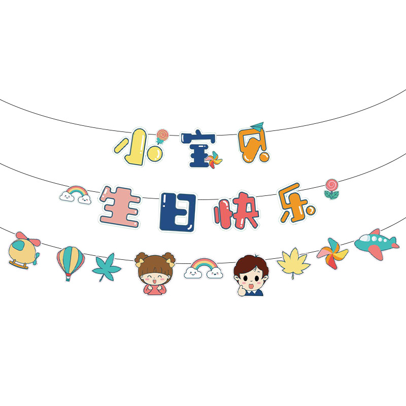 漫画ハッピーバースデーデコレーション紙のフラッグ赤ちゃんハッピーバースデーパーティーのフラワーバナーの配置