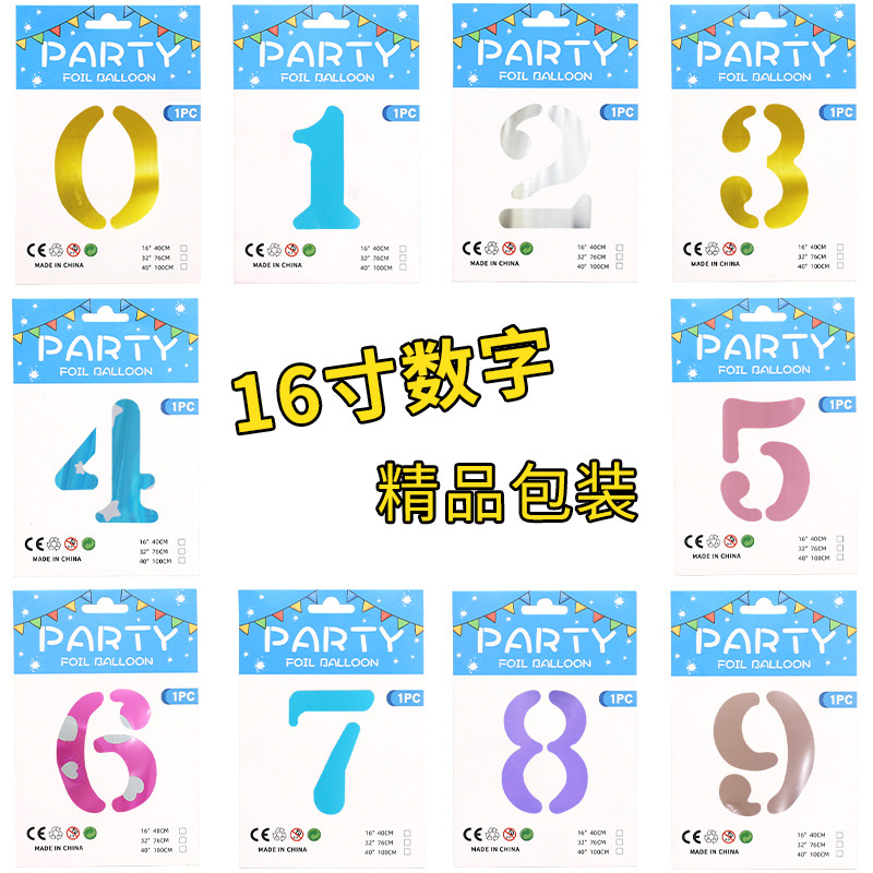 クロスボーダー16インチトランペット多色デジタル独立包装アルミ膜風船誕生日装飾デジタル風船卸売り
