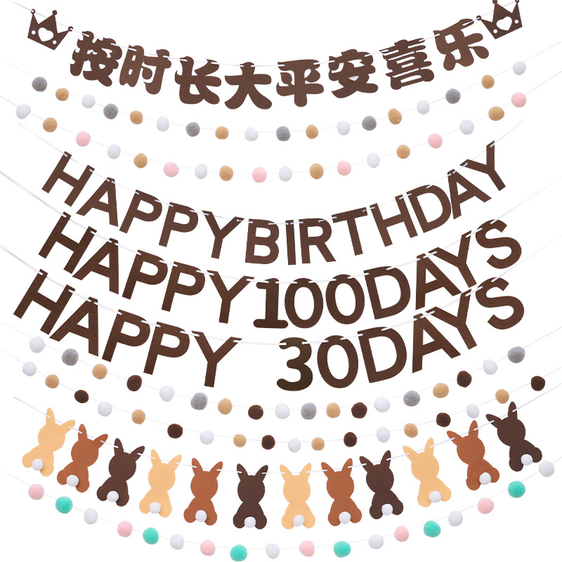 韓国ins誕生日おめでとうアルファベットコーヒー色不織布拉旗赤ちゃん歳誕生日パーティー茶色拉旗