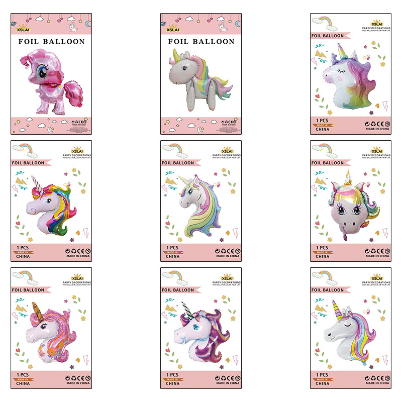 クロスボーダー大規模漫画ユニコーンアルミ膜風船精装シングルカード包装実体誕生日パーティーポニー装飾