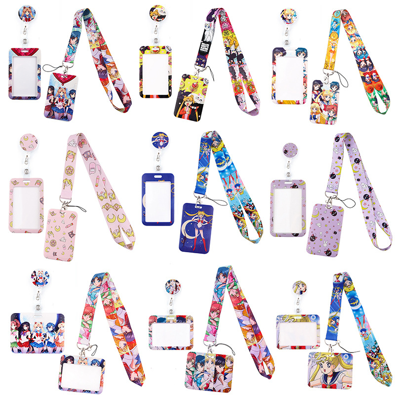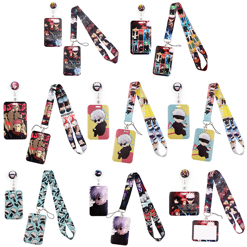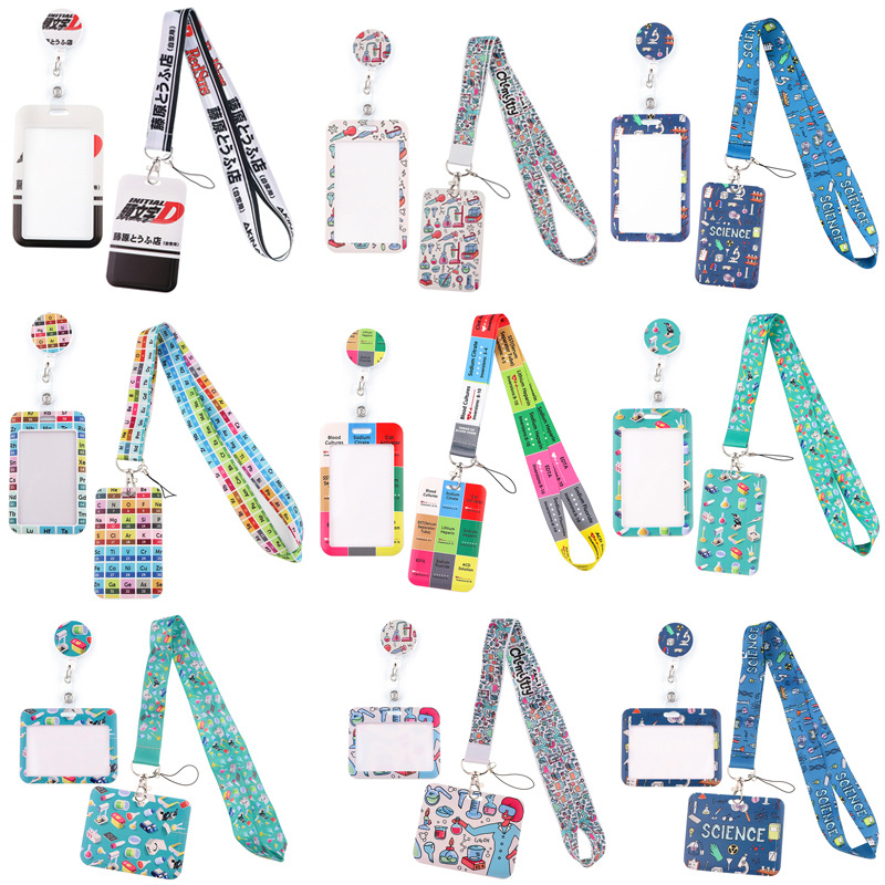 文字アニメ化学機器携帯電話ストラップカードホルダーキーチェーン胸カードカメラは3セット