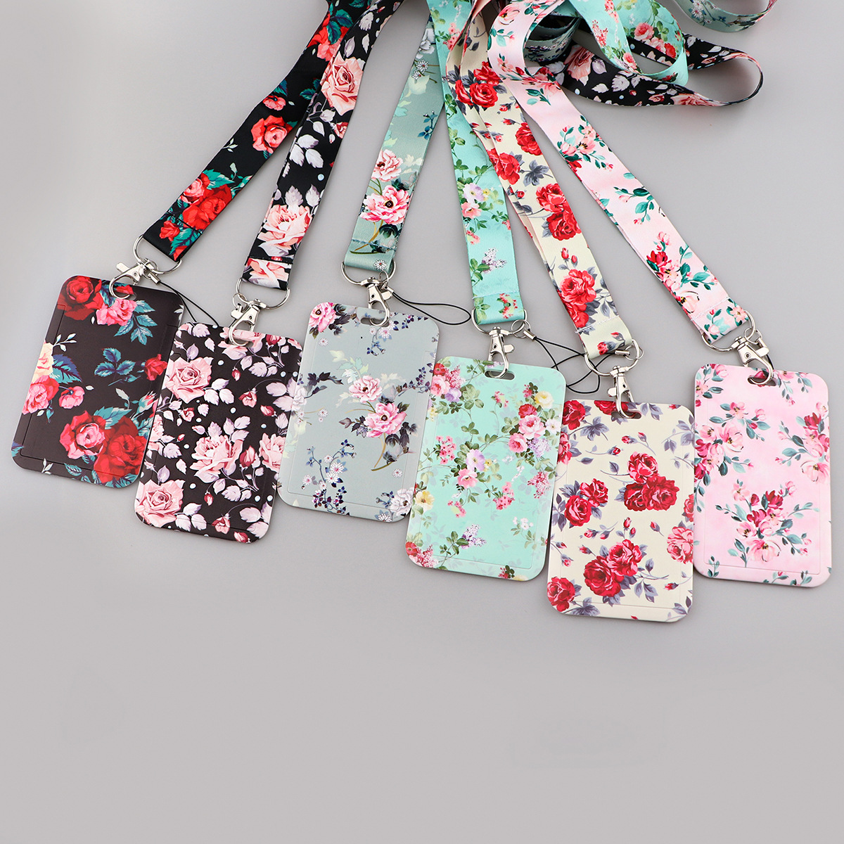 生花シリーズの携帯電話のひものカードは学生の学校の食事カードのバスのドアの禁止カードの事務の仕事の証明書のひものカードのセットを掛けます。