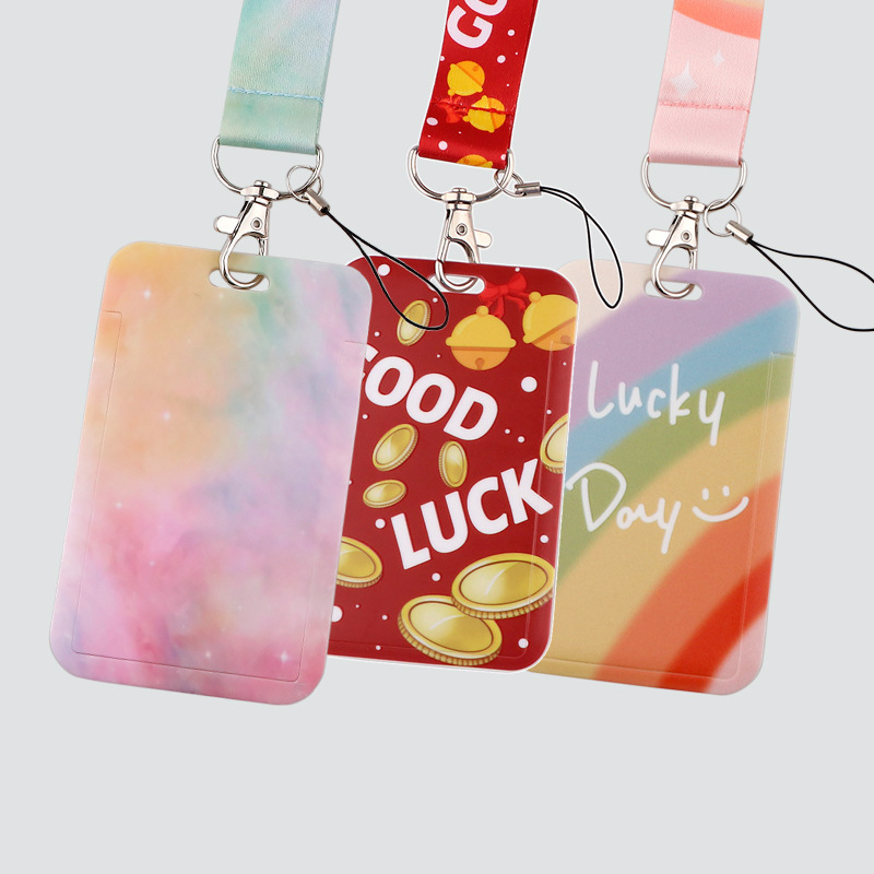 幸運の虹色の携帯電話の縄の仕事の札の縄の展示販売の会員証の縄の証明のセットの胸カードの硬いカードのカバー