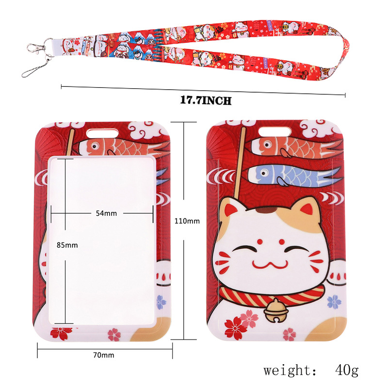 かわいい招き猫の携帯電話のひものカードのセットの長い型の胸カードのカメラの多機能の工場のブランドの両面は硬いカードのカバーを印刷します。
