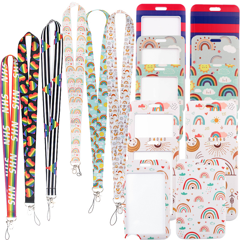 レインボーレインボーレインボー携帯電話のストラップの長い首のストラップファッション丈夫で耐久性のある医師証明書ハードカードカバーリボン