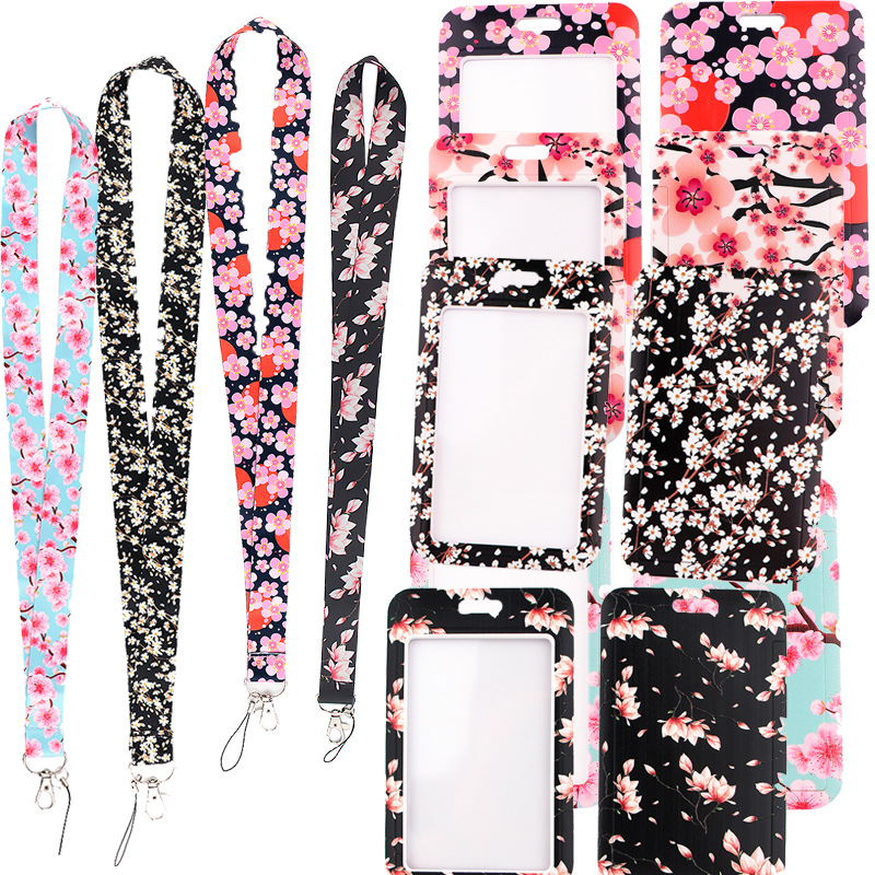 ロマンチックなバラの花柄携帯電話ストラップカードホルダー、キャンパスカード、バスカード、アクセスカード、社員証、工場カード、キーチェーンストラップ