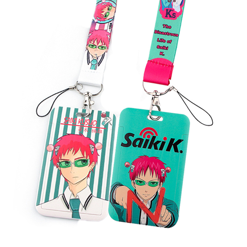 アニメのピンクの髪の斉木楠雄の携帯電話の紐の長いタイプの胸カードのカメラの首の紐の丈夫な仕事の札の紐