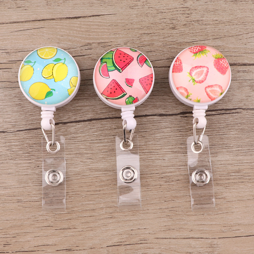 ドーナツスイカいちごレモン引きやすい伸縮可能な医療入退室作業証学生カードバッジ胸カードクリップ