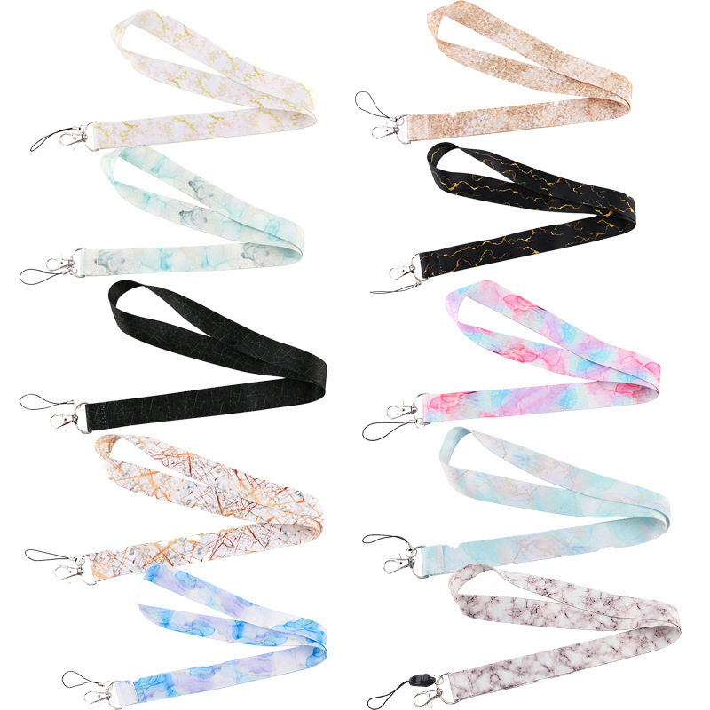 グラデーション色の大理石の携帯電話のひもの展示会の証明書の仕事の証明書の紛失防止の鍵の掛け金のポリエステルのリボン