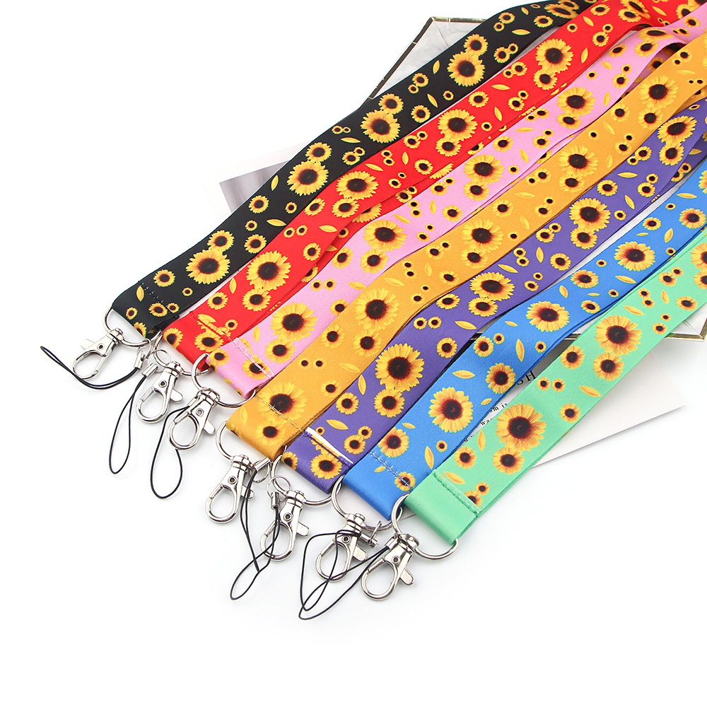 7色のヒマワリのシリーズの携帯電話は縄の展示会の証明書の工場のブランドの仕事の証明書のカードのカバーのポリエステルの多色のストラップを掛けます。