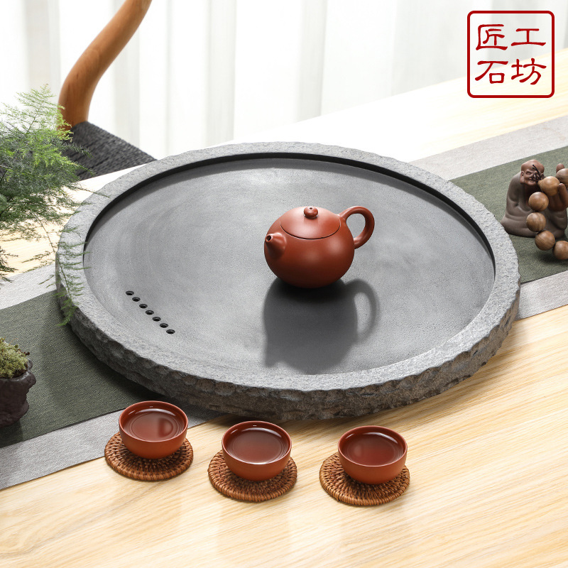 1pkn卸売り円形烏金石茶盤メーカー直販天然精品黒金石茶台トランペット茶海工夫
