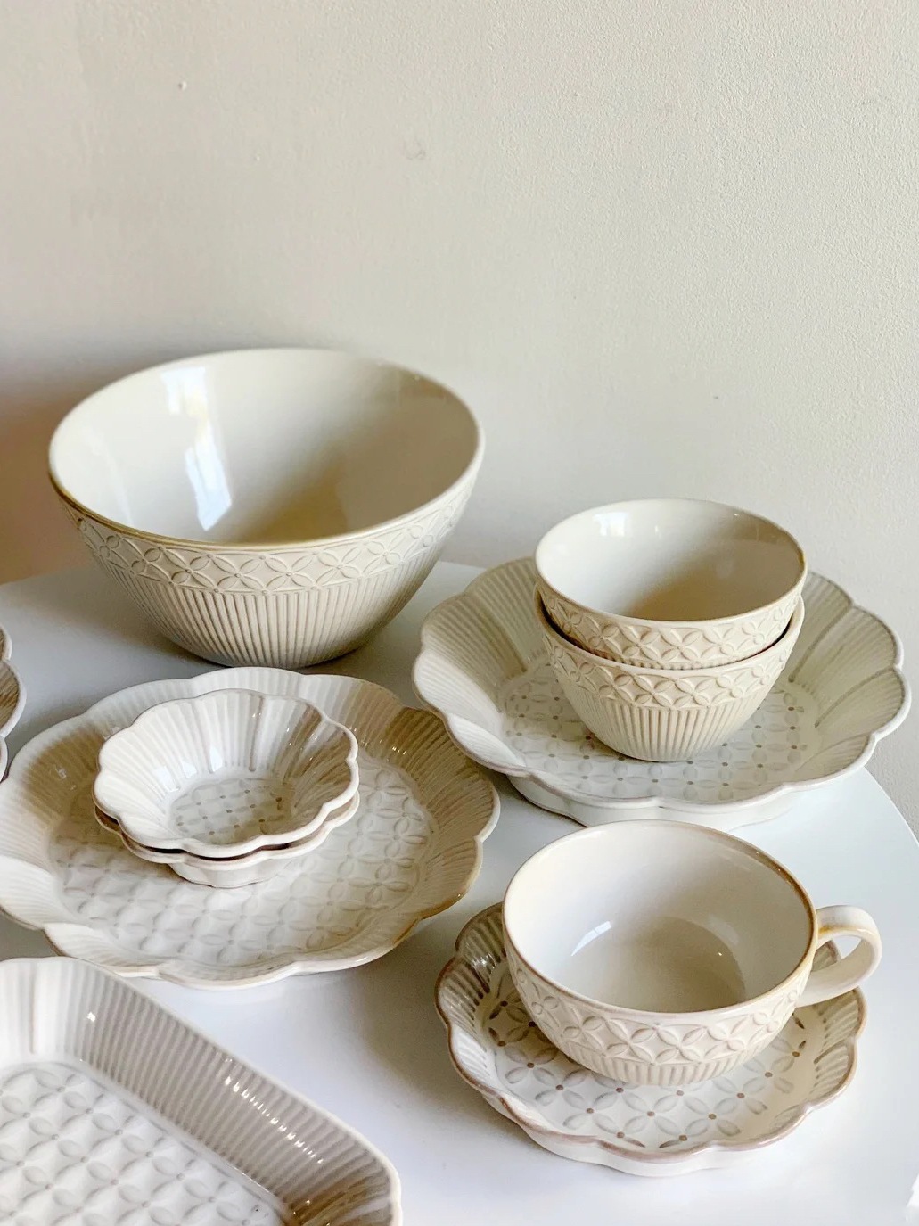 1pkn卸売り経典耐見仙森レリーフレトロレース陶磁器家庭用セット食器茶碗料理皿深皿