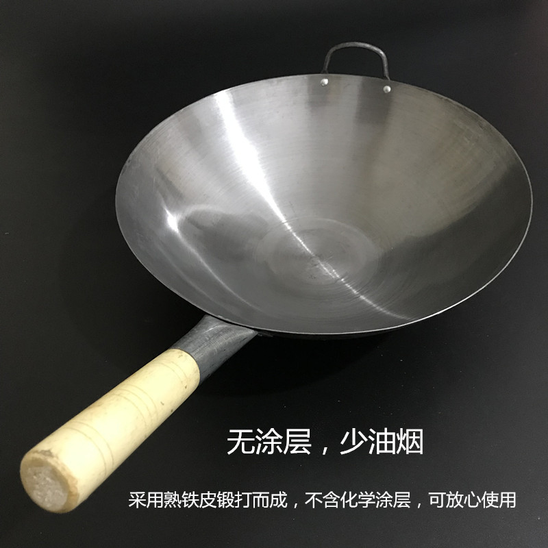 1pkn卸売り炒め鍋鉄皮鍋コーティングガス炉ファストフード店ホテル卵チャーハン炒め粉木柄