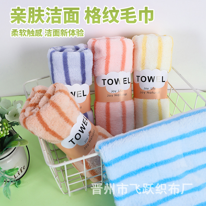 メーカー代発サンゴパイル縦縞タオル35*75家庭日用吸水厚手洗顔タオル卸売り