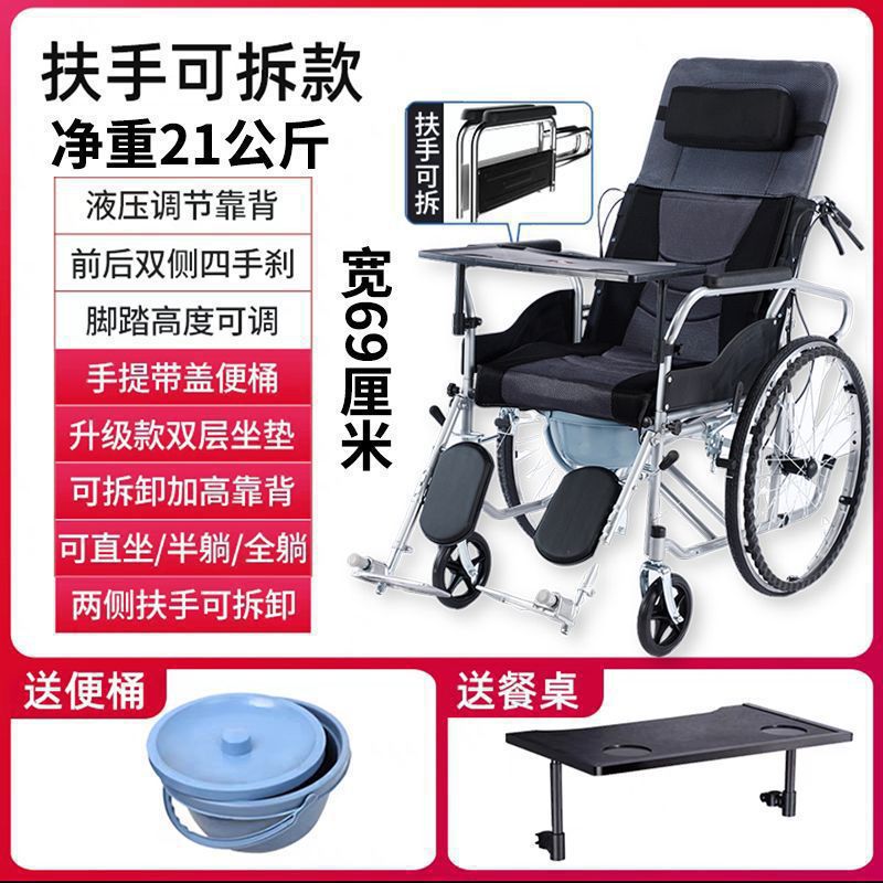 新型全横車椅子老人手動車椅子は折り畳み可能で、横になることができます。