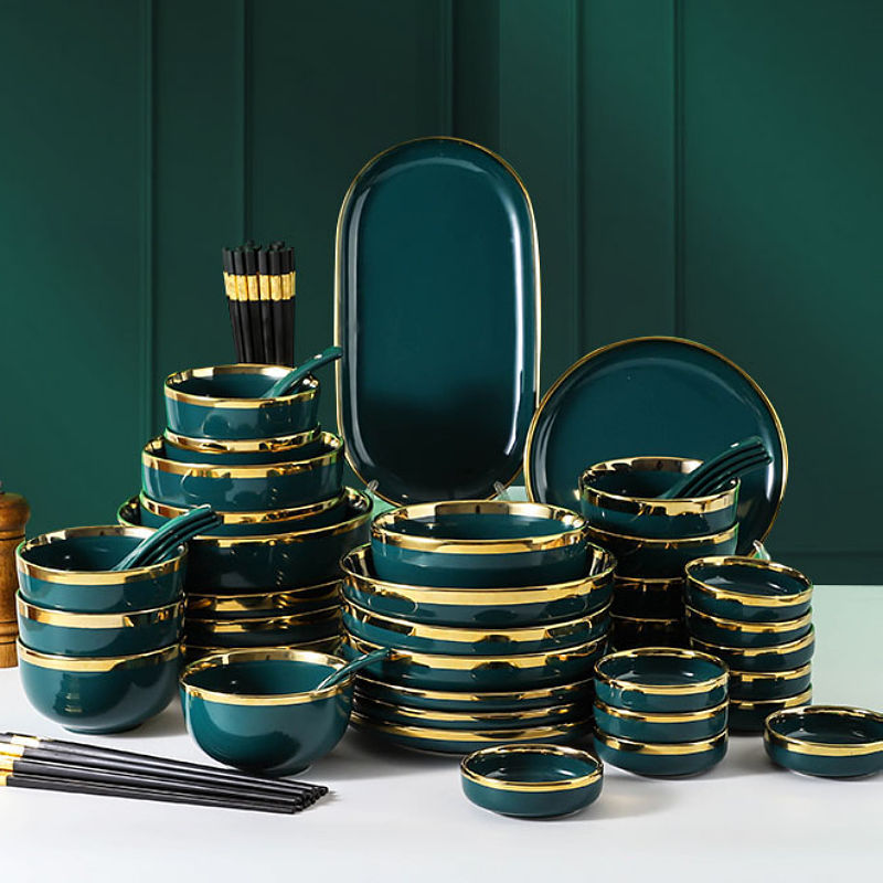 北欧の軽い豪華な碗の皿のセットの家庭用の金の辺の厚い創意の陶磁器の碗の食器の新しい皿の食器
