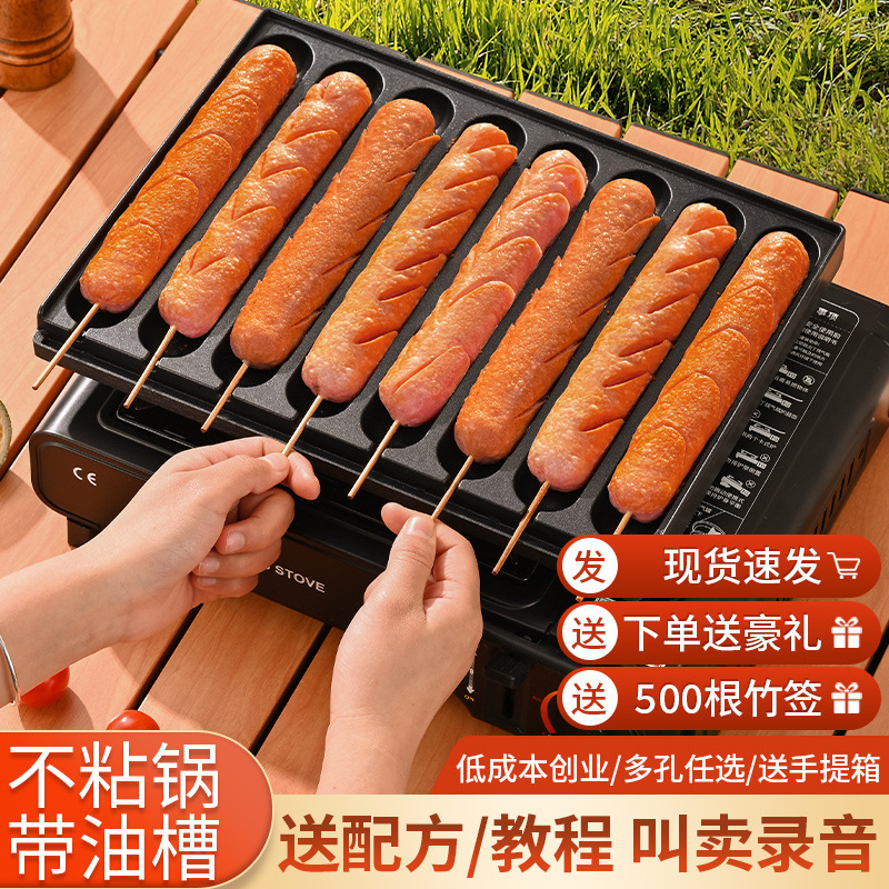 ソーセージ焼き機の道端の屋台の商用の脆い皮のデンプンの腸焼き機の夜市の屋台のカード式のオーブンの腸の皿の小さい鉄板の鋳型