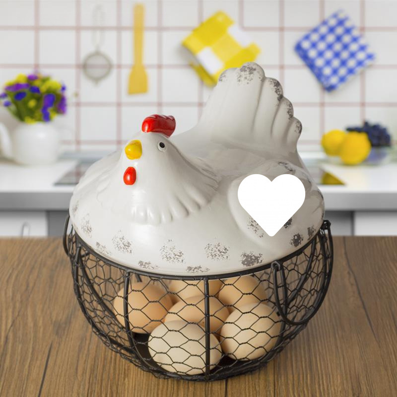 陶磁器の卵かごの果物かごの雑品の青い陶磁器の台所の物置棚のアイデアは鉄のバスケットの鉄の芸の収納かごを収納します。
