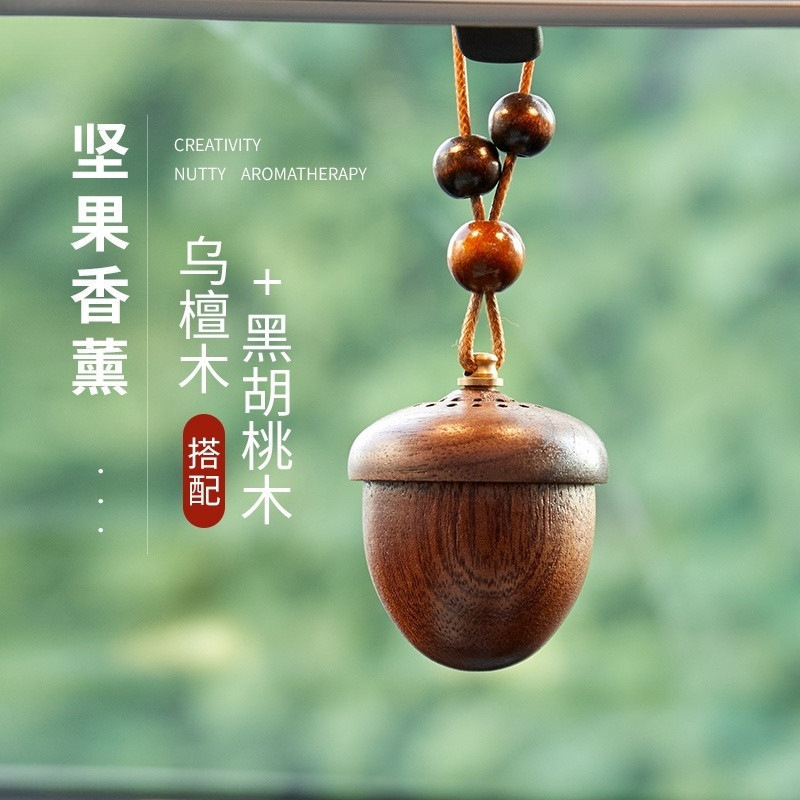L4Vナッツアロマ車載アロマカー用香水オイル車内自動車ストラップ吹出口実木松果高