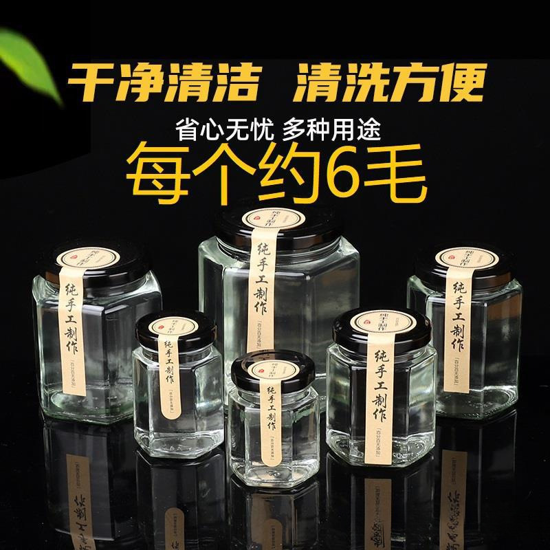 六角形ガラス瓶食品級密封缶レモンペースト1斤蜂蜜瓶カプサイソースジャム牛肉ソース蓋付き空