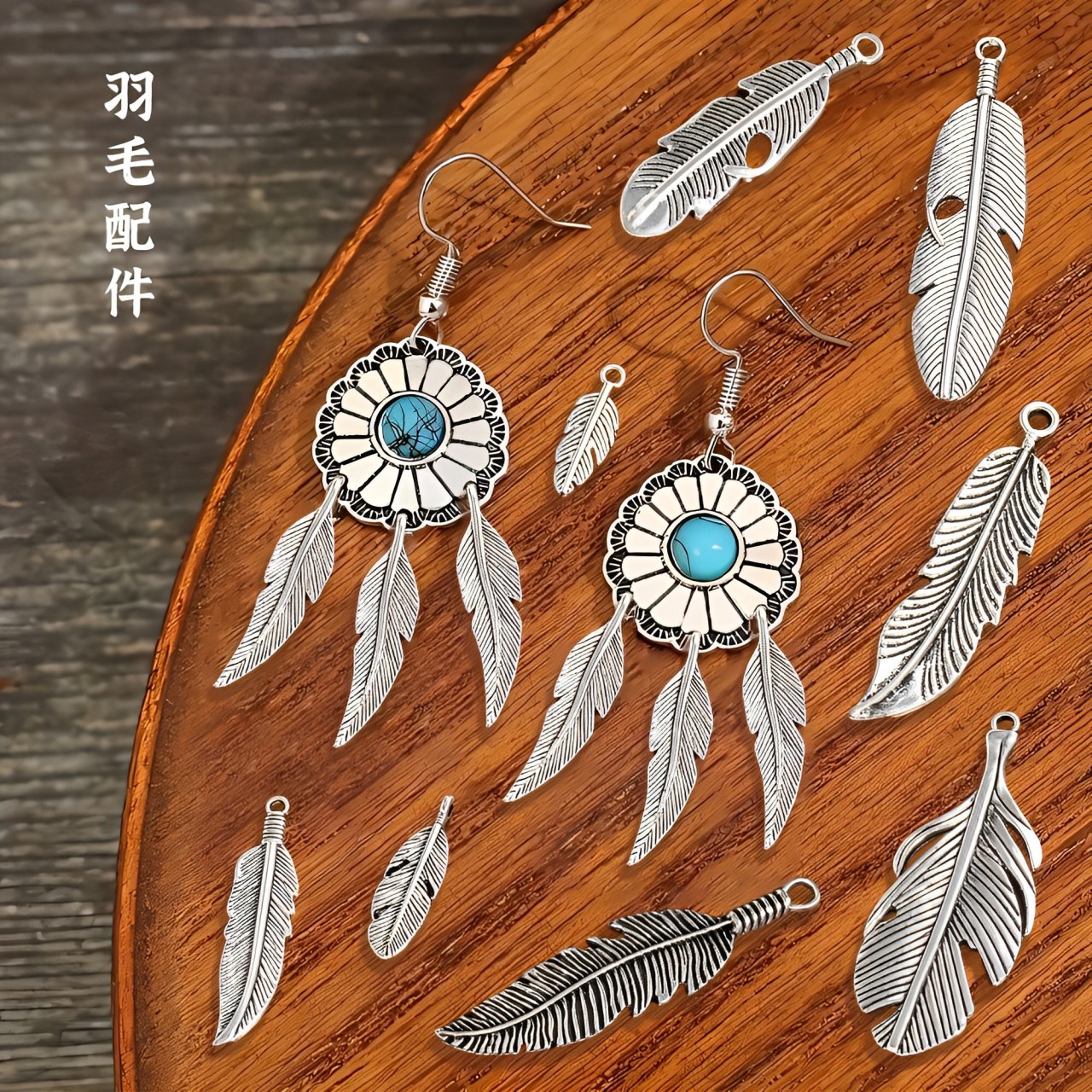 クロスボーダー新作 ヴィンテージ風ターコイズ ドリームキャッチャー 羽根 タッセル イヤリング ハンドメイドアクセサリー ペンダント