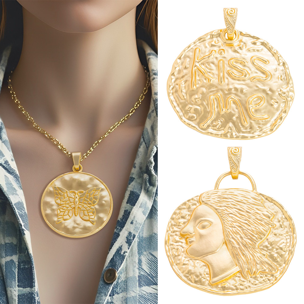 国境を越えた欧米の高級復古小衆レリーフ合金円形大ストラップアクセサリーネックレスペンダント