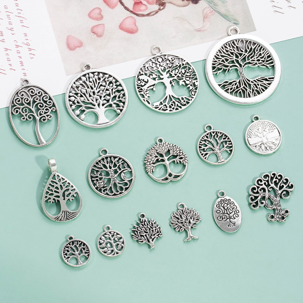 ファッション透かし彫り小衆アクセサリー卸売り生命の木ネックレス合金銀男女ペンダントdiyアクセサリー