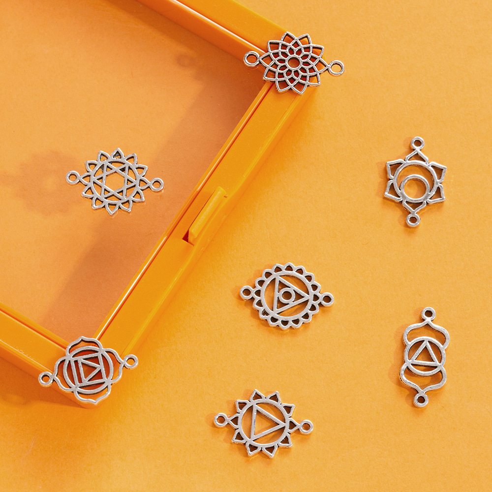 DIYアクセサリーの銀色の双吊六芒星のペンダントの不規則な透かし彫りのネックレスの古風のアクセサリーの部品