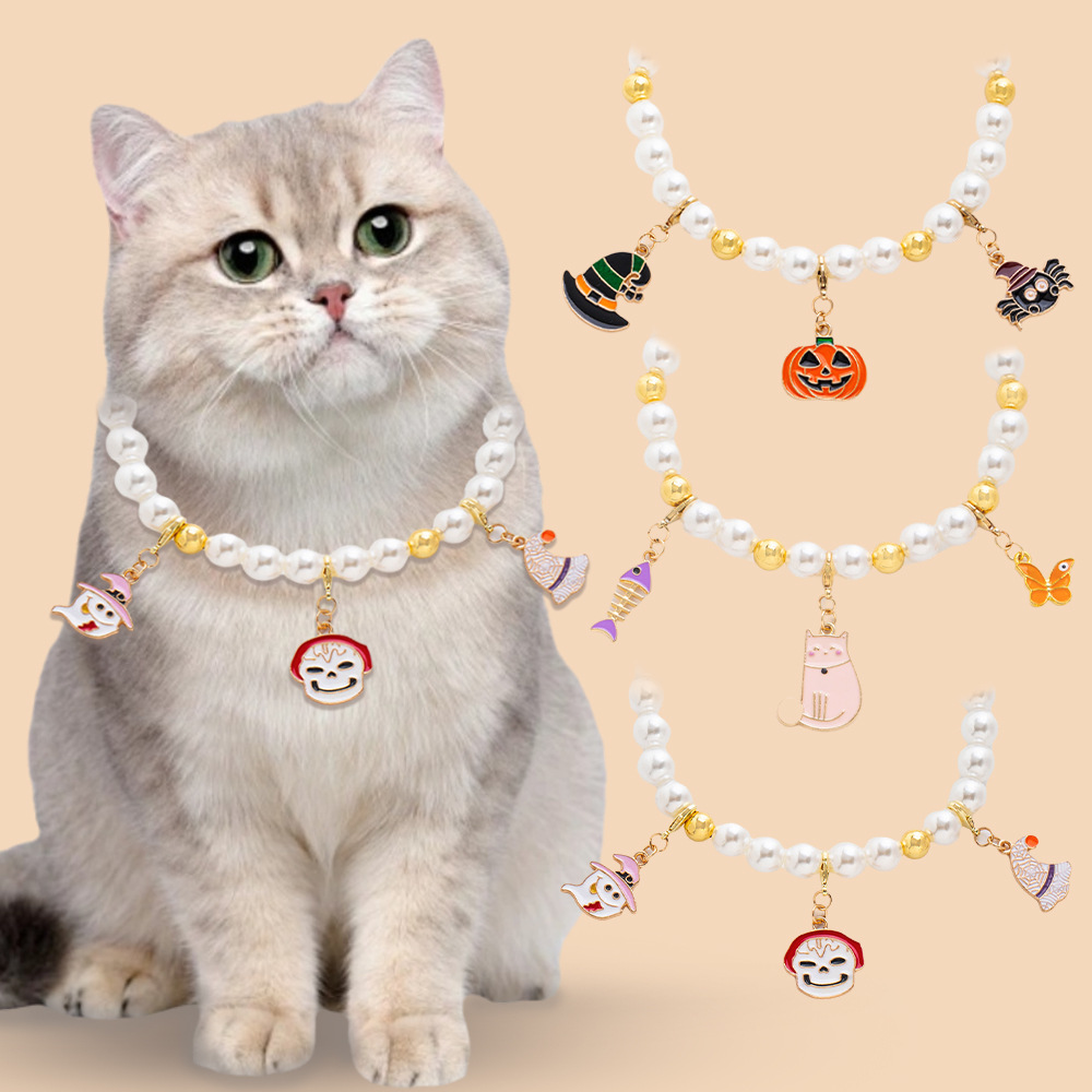 ペットのネックレスのハロウィーンの猫の首輪の犬の漫画の首のアクセサリーの装飾のハロウィーンの真珠のネックレスの卸売り