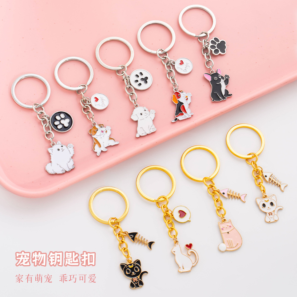 金属キーホルダー猫犬ペットキーホルダー丸いかわいい足跡キーホルダー愛リュックサック