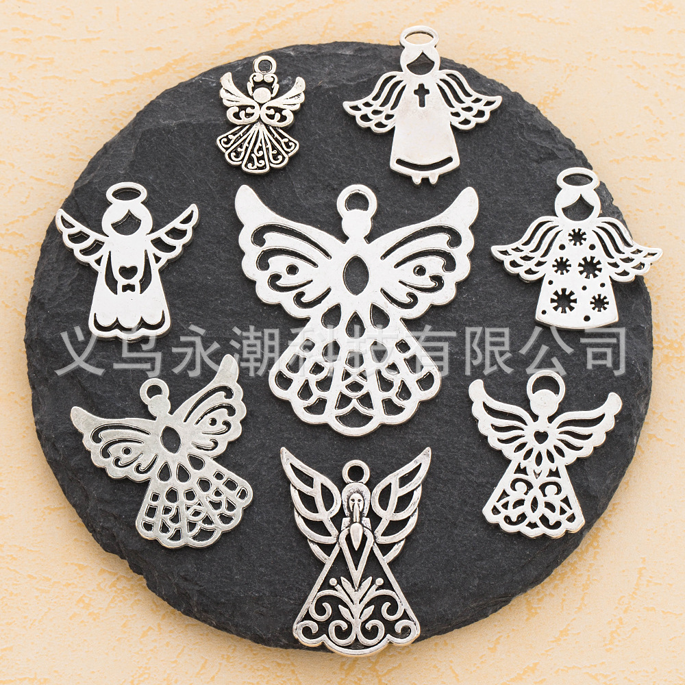 義烏アクセサリー合金diyアクセサリーの天使の翼の透かし彫りのペンダントのイヤリングのネックレスの手作りの部品