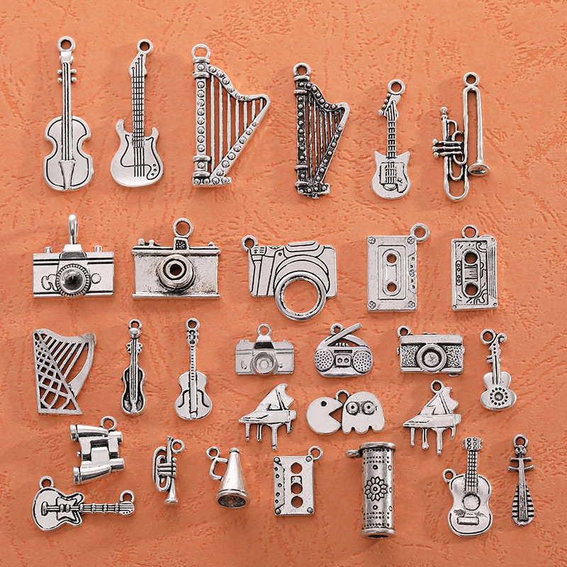 Diy合金部品古銀音楽シリーズペンダントアクセサリーレトロイヤホンバイオリン音符ブレスレットアクセサリー