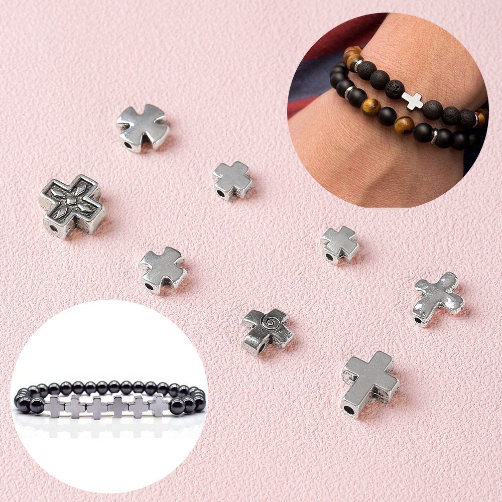 レトロ合金diy部品古銀個性風穿孔クロスブレスレット隔珠ネックレスペンダント
