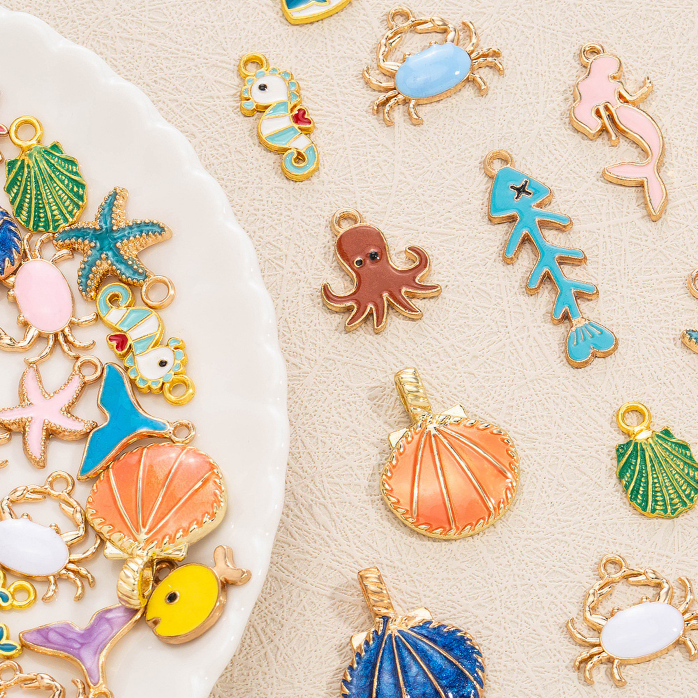 クロスボーダー爆発油貝殻ペンダント創意diyブレスレットアクセサリー人魚漫画合金アクセサリー