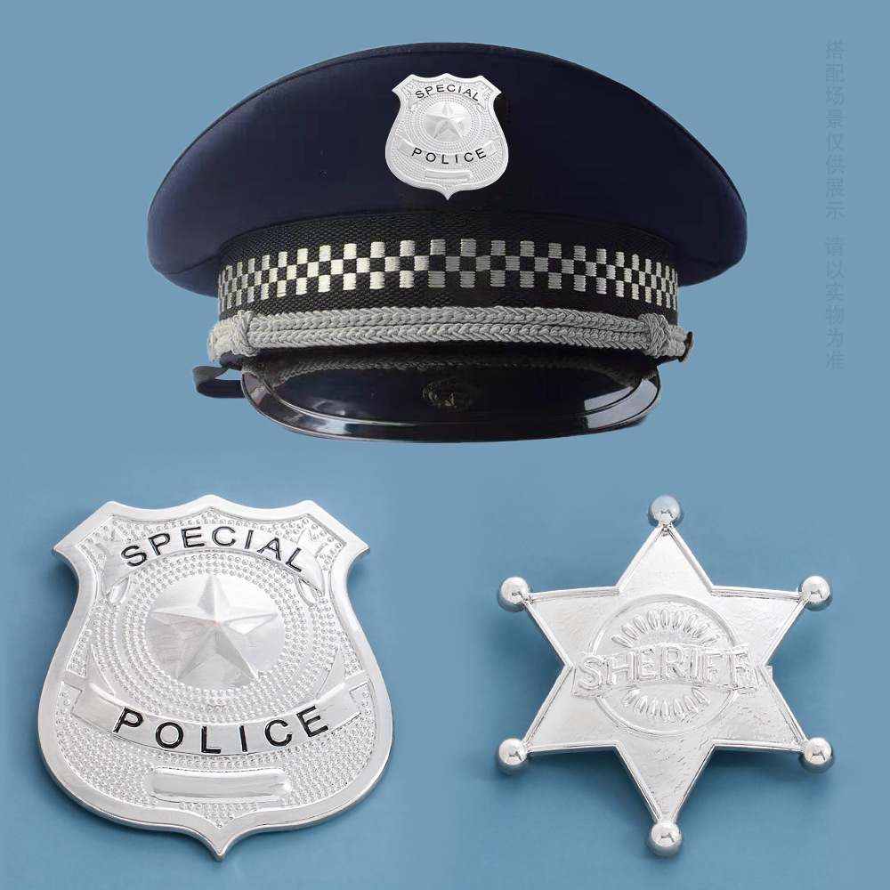 国境を越えて人気の合金製警察バッジブローチ、パーソナライズされたハロウィンコス警察バッジヘアピン、面白いピン
