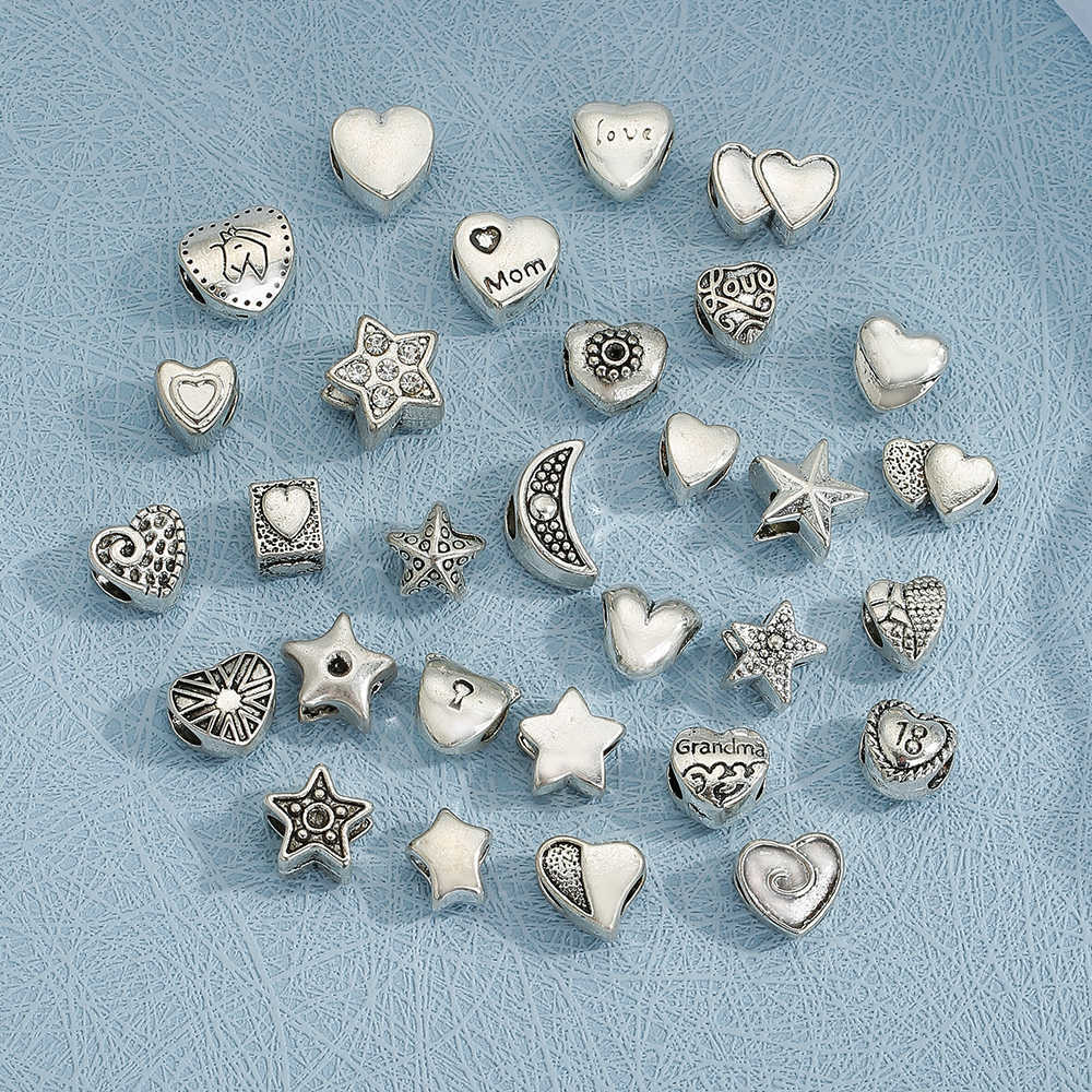 ヴィンテージ合金大穴ビーズ個性DIYアンティークシルバースペーサービーズ手作りブレスレットチェーンビーズアクセサリー工場卸売