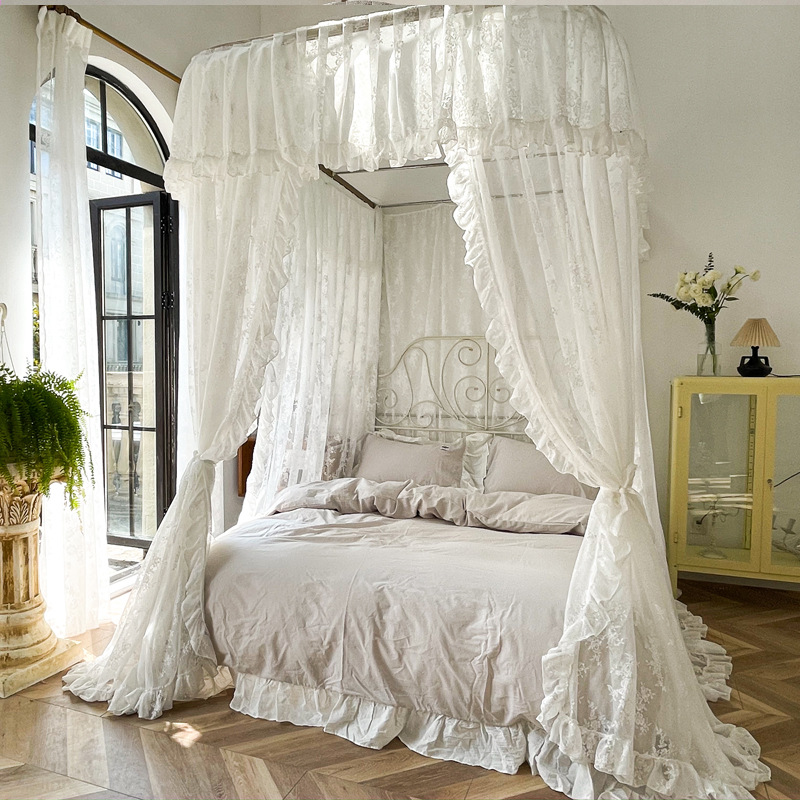 2024新品1.8mベッド家庭用蚊帳ホワイトフレンチレースu型レールプリンセス風ベッドカーテン