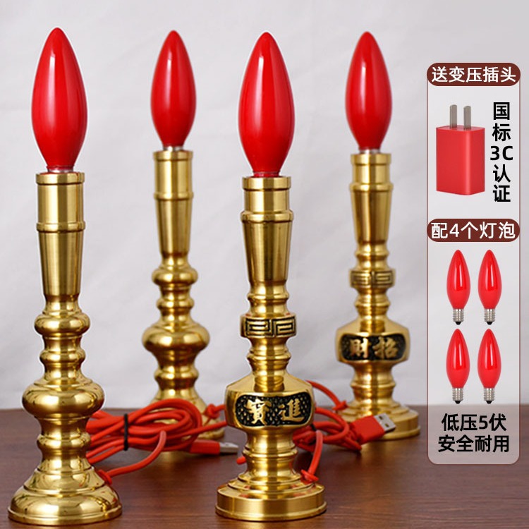 純銅招財ろうそく灯led長明供灯仏前神台燭台家庭用供供仏電子財神灯