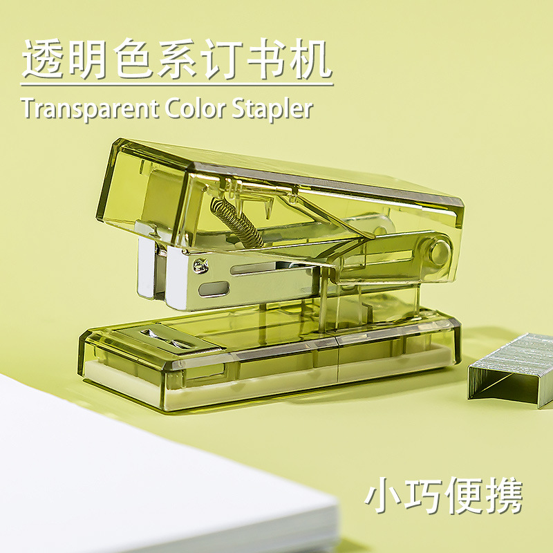 透明ミニホッチキス学生用小型トランペットホッチキスハンドグリップ式高颜値定书机ポータブル纸
