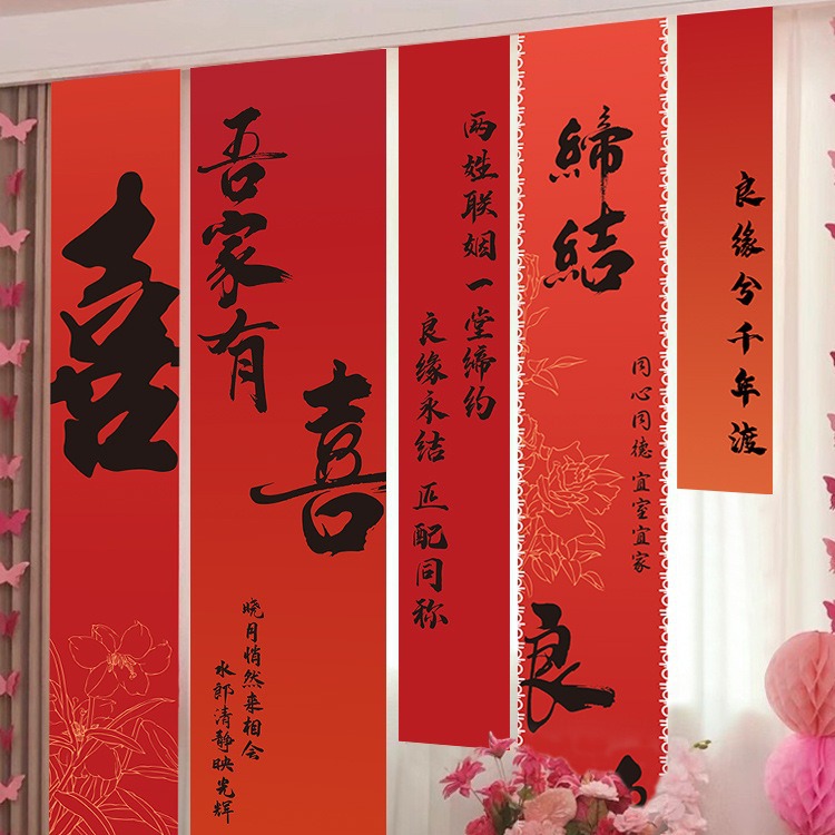 結婚の立体喜字の置物の結婚部屋のリビングルームの寝室の配置は結婚披露宴の装飾品のウェディング用品の大全を予約します。